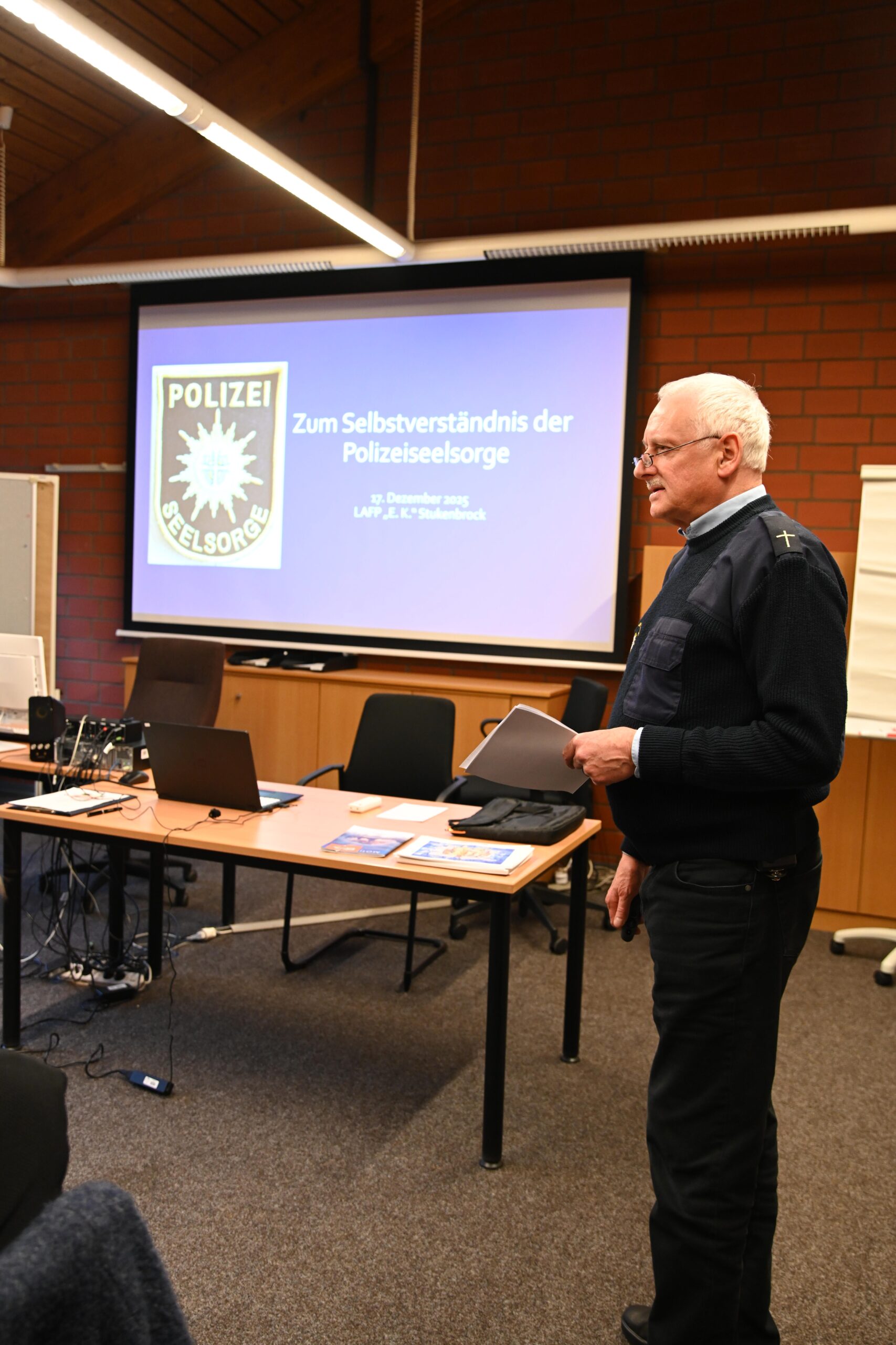 Zur Jahrestagung der Polizeiseelsorge kamen am 17. Dezember 2025 die Kategorialseelsorger im Landesamt für Aus- und Fortbildung der Polizei NRW (LAFP) in Schloß Holte-Stukenbrock zusammen. Dort ging es um aktuelle Entwicklungen und Perspektiven der Polizeiseelsorge im Erzbistum Paderborn, eingebettet in den laufenden Transformationsprozess. Thematisiert wurden unter anderem die seelsorgliche Begleitung nach belastenden Einsätzen, ethische Bildungsangebote in der polizeilichen Ausbildung sowie die enge Zusammenarbeit mit psychosozialen Unterstützungsstrukturen der Polizei. Polizeidekan Monsignore Wolfgang Bender, der seit 25 Jahren mit großen persönlichen Engagement in der Polizeiseelsorge tätig ist, führte durch den Nachmittag und machte deutlich, wie sehr dieser Dienst dort ansetzt, wo dienstliche Regelwerke enden und existenzielle Fragen beginnen. Die Polizeiseelsorge versteht sich dabei als kirchlicher Dienst in der Polizei, der vertraulich, offen und ökumenisch getragen ist. Sie begleitet Polizeibedienstete unabhängig von deren Glauben in beruflichen wie privaten Krisen, leistet psychosoziale Akuthilfe, unterstützt bei Trauer, Schuld- und Sinnfragen und eröffnet Räume für Reflexion, Mediation und spirituelle Stärkung.