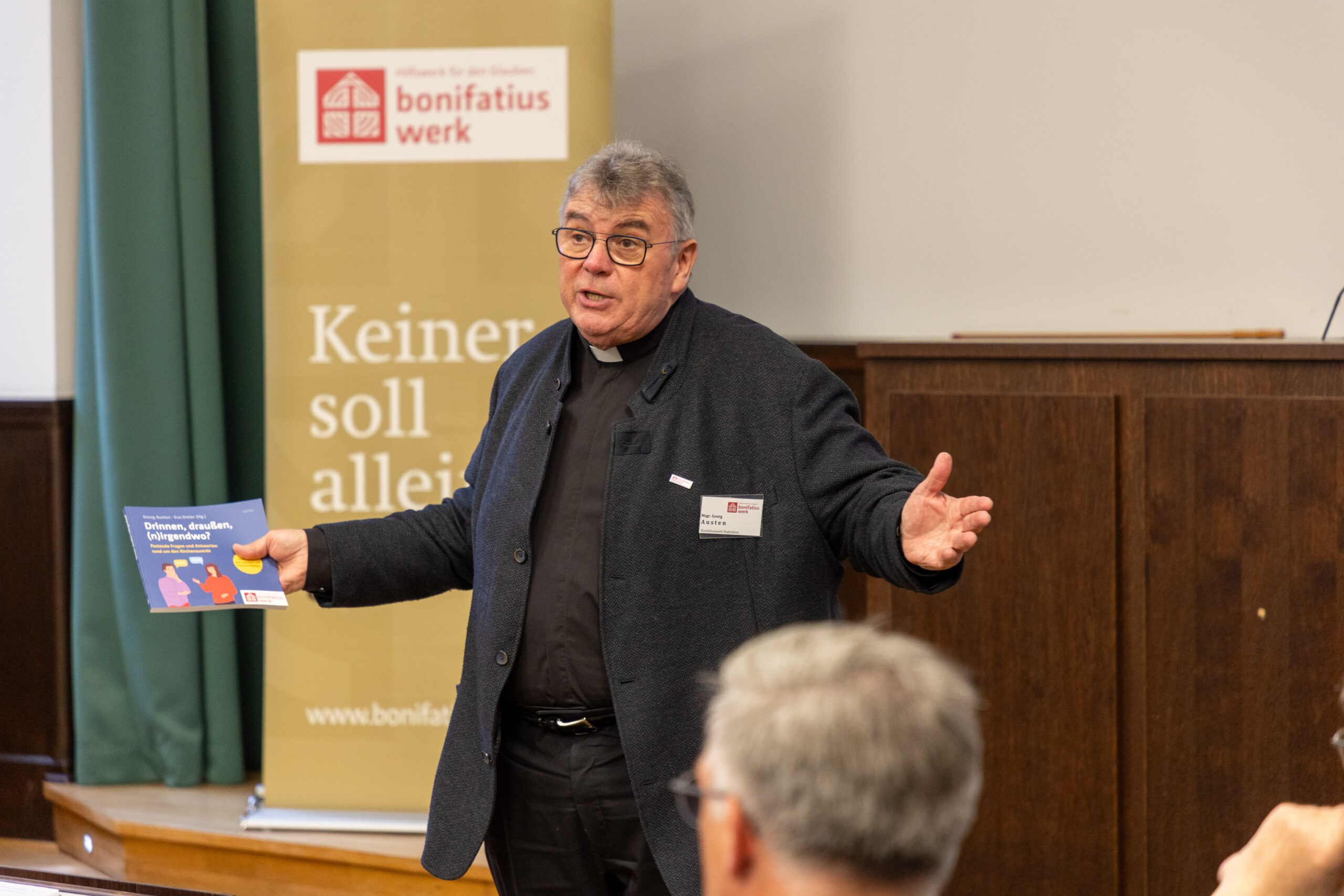 Was sind die Gründe dafür, dass Menschen sich von der Kirche abwenden? Wie kann die katholische Kirche Menschen begegnen, die offiziell die Kirche verlassen haben oder um den Mehrwert einer Kirchenmitgliedschaft ringen? Gibt es das eine Patentrezept? Um diese Fragen ging es an diesem Donnerstag beim bundesweiten Studientag „Drinnen, draußen, (n)irgendwo?“, zu dem das Bonifatiuswerk und die Theologische Fakultät Paderborn eingeladen hatten. An der Resonanz war zu erkennen, wie sehr das Thema ehren- und hauptamtlich Mitarbeitende in der pastoralen Arbeit umtreibt. Das Credo: Kirche muss auf Menschen zugehen, die mit der Kirche fremdeln.