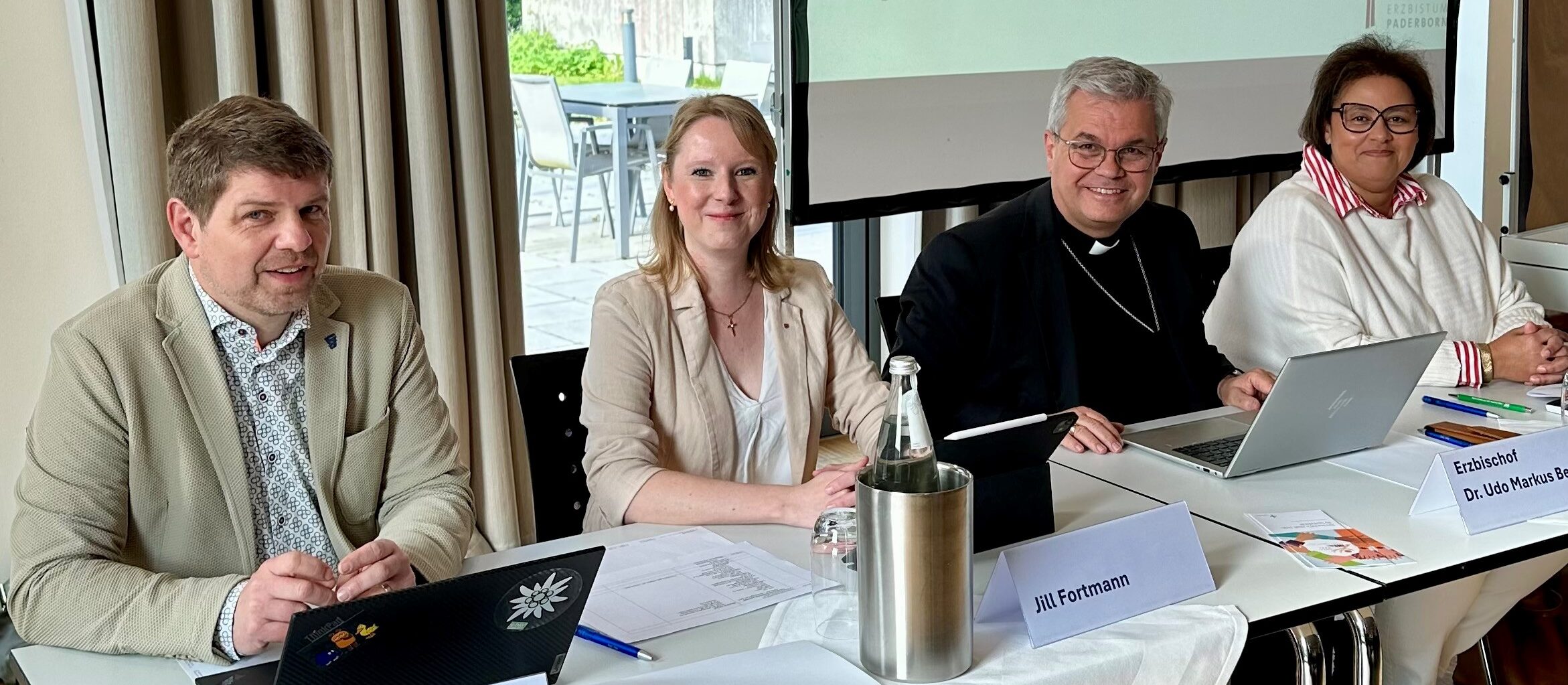 Bei seiner Sitzung am Freitag und Samstag, 17. und 18. April 2026, in Soest hat der Diözesanpastoralrat des Erzbistums Paderborn einen neuen Vorstand gewählt. Zur Vorsitzenden des Geschäftsführenden Vorstands wurde Nadine Mersch gewählt. Als stellvertretende Mitglieder des Vorstandes wurden Manuel Johannes Cordes und Jill Fortmann bestimmt. Künftig wird der neue Vorstand die Sitzungen des Diözesanpastoralrates gemeinsam mit Erzbischof Dr. Udo Markus Bentz vorbereiten und leiten. Der Erzbischof bedankte sich bei dem neuen Vorstand für die Übernahme dieses wichtigen Amtes.