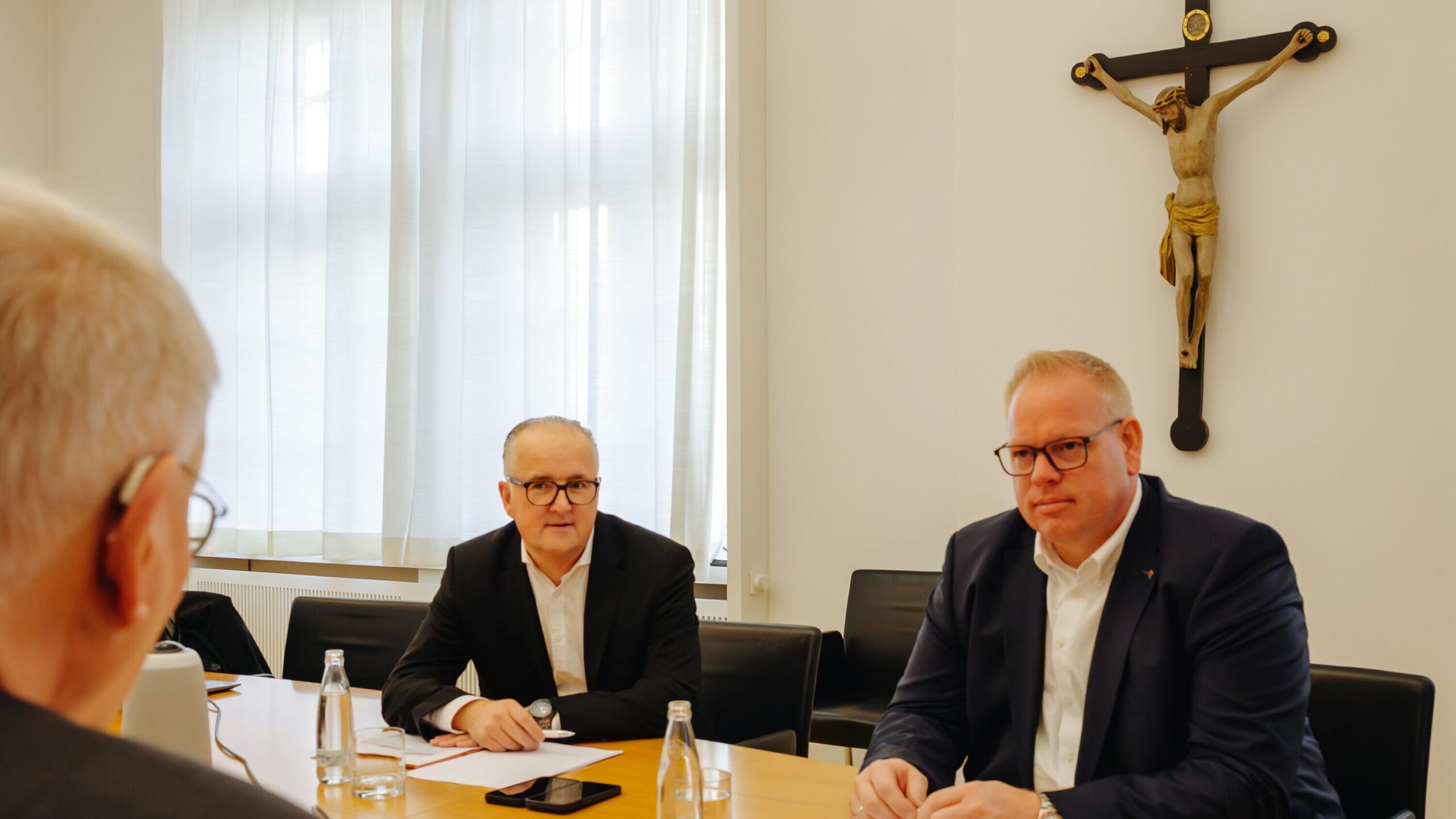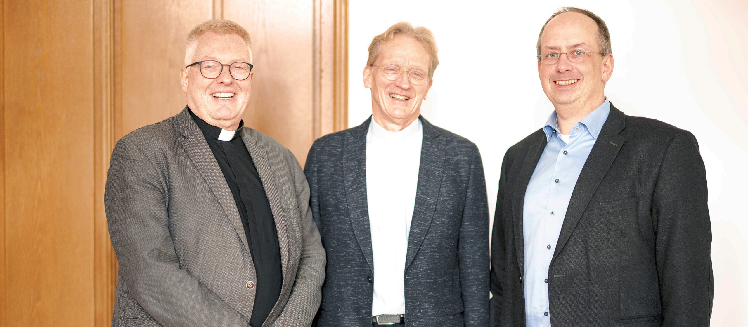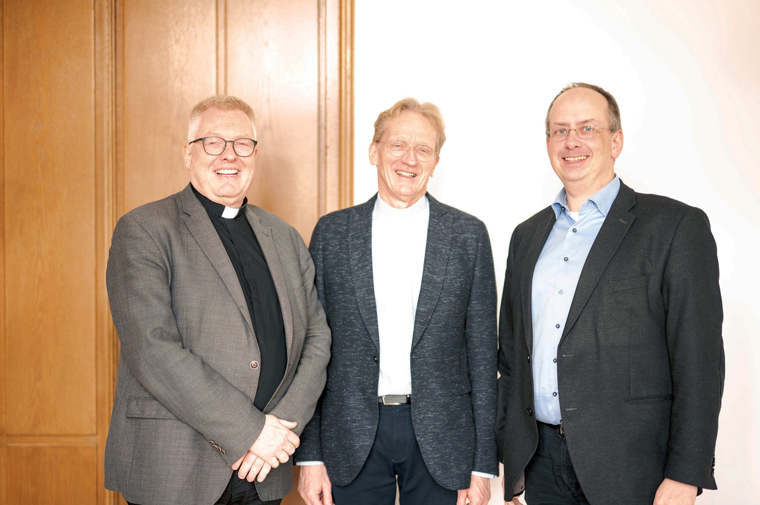 Dr. Rainer Hohmann und Oliver Lücke teilen sich die Aufgaben so auf, dass wenig Doppelstrukturen entstehen. „Im gleichberechtigten ‘Kleriker-Laien-Duo‘ legen wir Wissen und Kompetenzen zusammen und betrachten die Themen multiperspektivisch, da wo das sehr erforderlich und hilfreich ist“, so Rainer Hohmann. „Das hat auch etwas mit Absicherung von Entscheidungen und mit Gewaltenteilung zu tun.“ Oliver Lücke freut sich: „Gleichzeitig haben wir zusätzliche Kapazitäten in der Bereichsleitung gewonnen, um die pastoralen Berufsgruppen in den Herausforderungen des Transformationsprozess bestmöglich zu unterstützen.“
